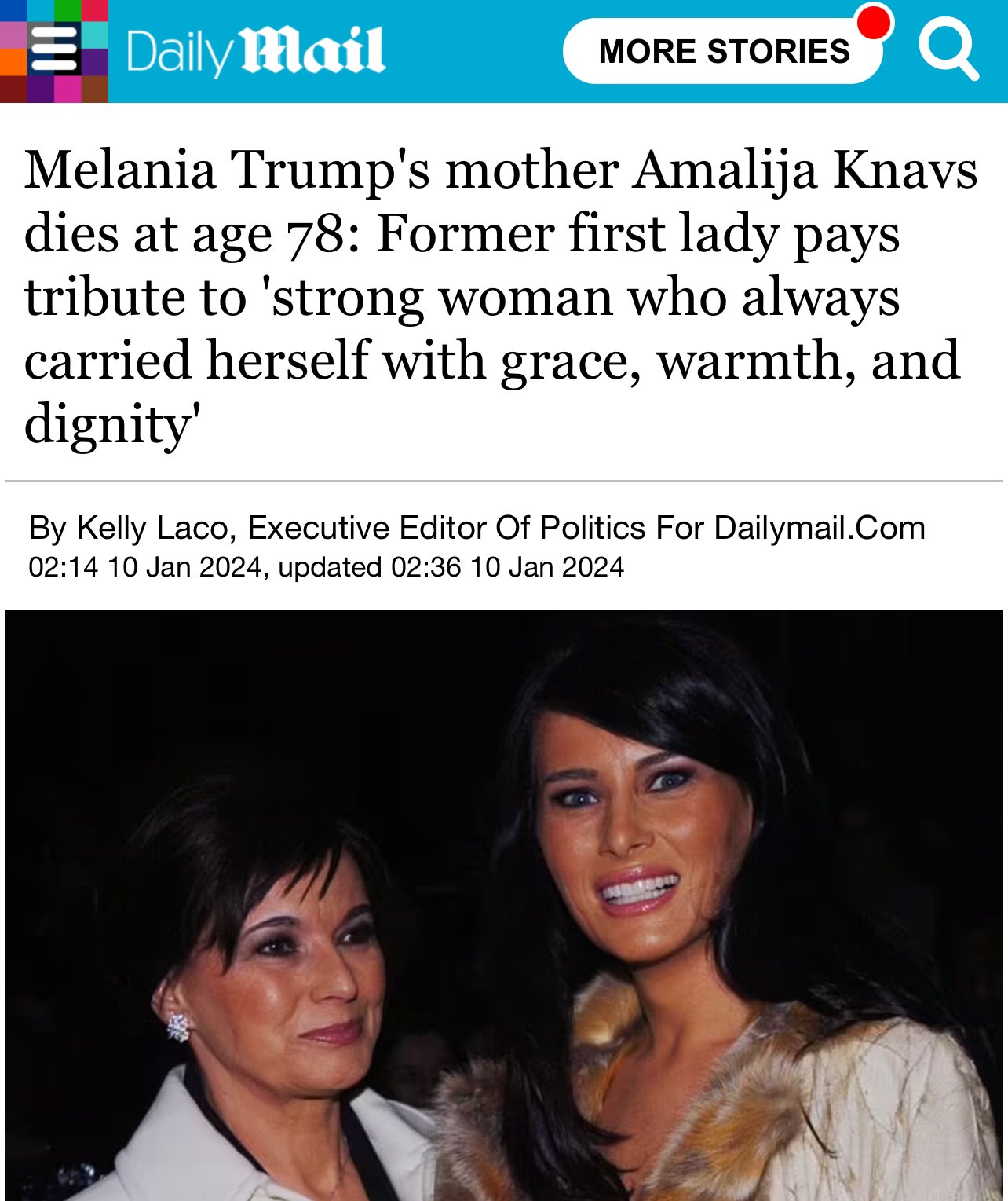Source : www.dailymail.co.ukChief Nerd on X: ““Former First Lady Melania Trump’s mother